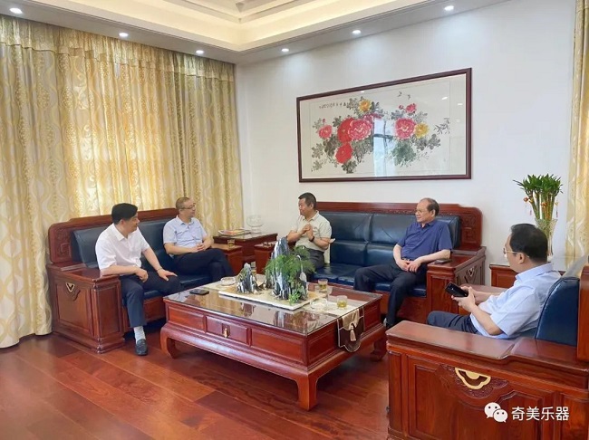 6月22日上午,中國樂器協會常務副理事長孫瑞勇在靖江市城南園區黨委書記楊曉波的陪同下,一行蒞臨奇美公司調研指導,奇美公司董事長張龍貴熱情接待。